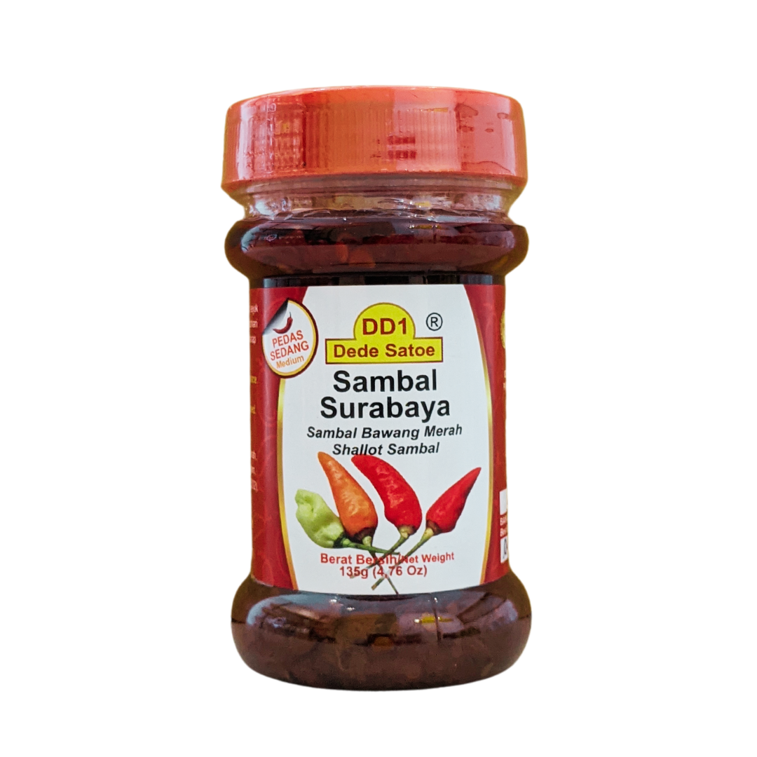 Welcome to Dede Satoe Traveling to other people's lands is indeed very fun and full of challenges. Meet new friends, gain experience, and experience new culinary. Sometimes, eating Indonesian food becomes something that is missed. Sambal Dede Satoe comes to meet the need for practical packaged sambal, which is easy to carry anywhere and anytime. MSG and artificial food coloring free. HACCP, US FDA, GMP, Halal certified. Ingredients: Chili, shallot, salt, vegetable oil, potassium sorbate. Net weight: 135 grams Which is your favourite? ❤️ --- Selamat datang di Dede Satoe Perjalanan ke negeri orang, memang sangat menyenangkan dan penuh tantangan. Bertemu teman baru, mendapat pengalaman, dan merasakan kuliner baru. Adakalanya, makan masakan Indonesia menjadi hal yang dirindukan. Sambal Dede Satoe hadir untuk memenuhi kebutuhan akan sambal kemasan praktis, yang mudah dibawa ke mana saja dan kapan saja. Bebas MSG dan pewarna makanan buatan Tersertifikasi HACCP, US FDA, GMP, dan Halal. Komposisi: Cabai, bawang merah, minyak nabati, garam, kalium sorbat. Berat Bersih: 135 gram Manakah favorit anda? ❤️
