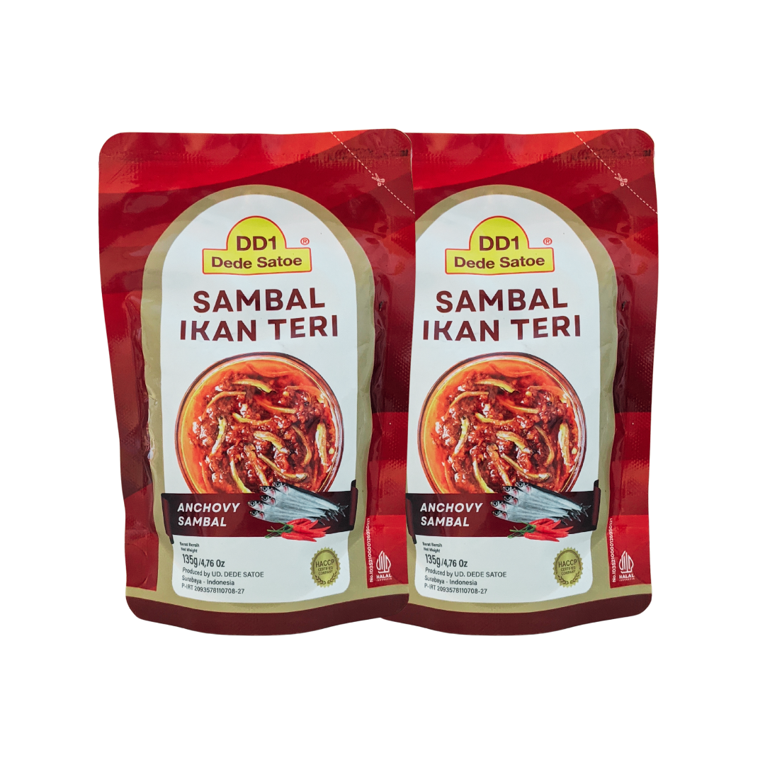 Welcome to Dede Satoe Traveling to other people's lands is indeed very fun and full of challenges. Meet new friends, gain experience, and experience new culinary. Sometimes, eating Indonesian food becomes something that is missed. Sambal Dede Satoe comes to meet the need for practical packaged sambal, which is easy to carry anywhere and anytime. MSG and artificial food coloring free. HACCP, US FDA, GMP, Halal certified. Ingredients: Chili, shallot, salt, vegetable oil, potassium sorbate. Net weight: 135 grams Which is your favourite? ❤️ --- Selamat datang di Dede Satoe Perjalanan ke negeri orang, memang sangat menyenangkan dan penuh tantangan. Bertemu teman baru, mendapat pengalaman, dan merasakan kuliner baru. Adakalanya, makan masakan Indonesia menjadi hal yang dirindukan. Sambal Dede Satoe hadir untuk memenuhi kebutuhan akan sambal kemasan praktis, yang mudah dibawa ke mana saja dan kapan saja. Bebas MSG dan pewarna makanan buatan Tersertifikasi HACCP, US FDA, GMP, dan Halal. Komposisi: Cabai, bawang merah, minyak nabati, garam, kalium sorbat. Berat Bersih: 135 gram Manakah favorit anda? ❤️